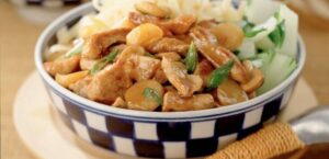 - Verhit ondertussen 10 g boter in een hapjespan met anti-aanbaklaag en bak hierin de spekjes in ca. 5 minuten op zacht vuur knapperig. Voeg de knoflook en gesneden ui toe en fruit deze ca. 5 minuten mee. Voeg de deelblokjes spinazie toe en verhit deze in ca. 8 minuten op zacht vuur. Schep de macaroni door het spinaziemengsel en breng het op smaak met peper.