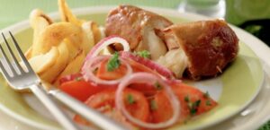 - Plaats de schaal afgedekt met aluminiumfolie ca. 20 minuten in de oven. Gratineer de ovenschotel tenslotte 5 minuten onafgedekt onder de grill.